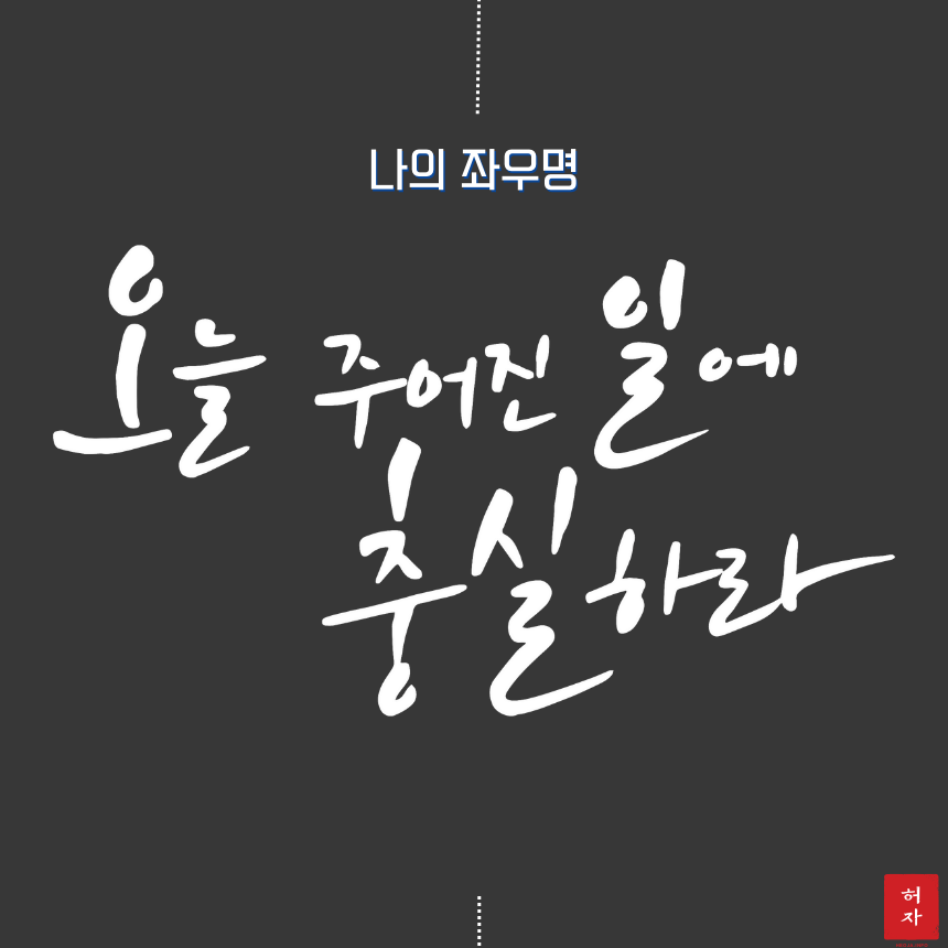 어떻게 하다보니 14개가 되었다. 애매하네... 한 개 더 쓰려고 했지만 귀찮아서 패스. 철 지난 명언 문구 같지만 그래도 가슴속에 담아두면 좋은 일이 생기지 않을까. 몸 튼튼한 것도 중요하지만 정신도 건강해야겠지. 이런 거 직접 뽑아서 캘리그라피 액자로 만들면 좋겠다. 어디 그런 곳 없나?