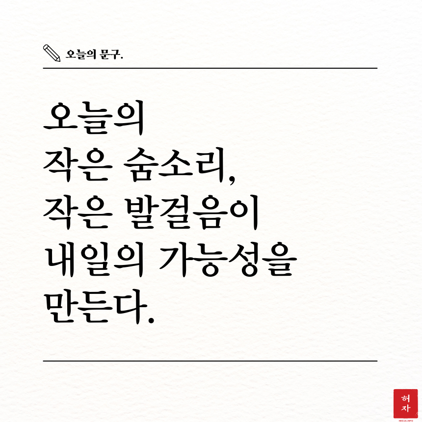 14. 오늘의 작은 숨소리, 작은 발걸음이 내일의 가능성을 만든다. 티끌모아 태산이라는 말도 있듯이 작은 행동, 작은 재산이 결국 큰 사람과 큰 재산이 될 것이다.