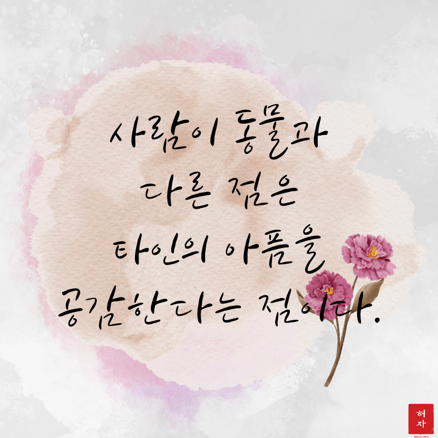 11. 사람이 동물과 다른 점은 타인의 아픔을 공감한다는 점이다. 반대로 본다면 사람이니까 남을 험담하는 것도 있겠지. 좋은 것을 선택하자.