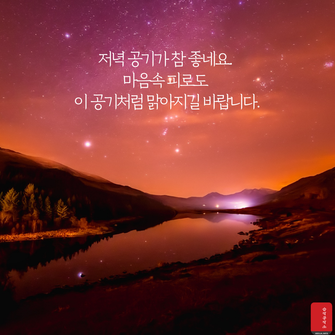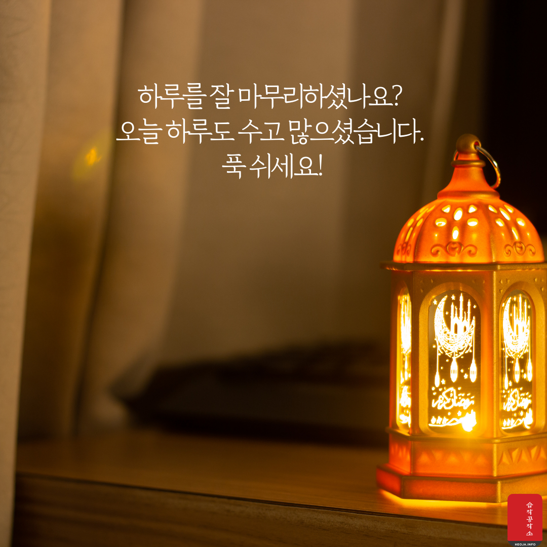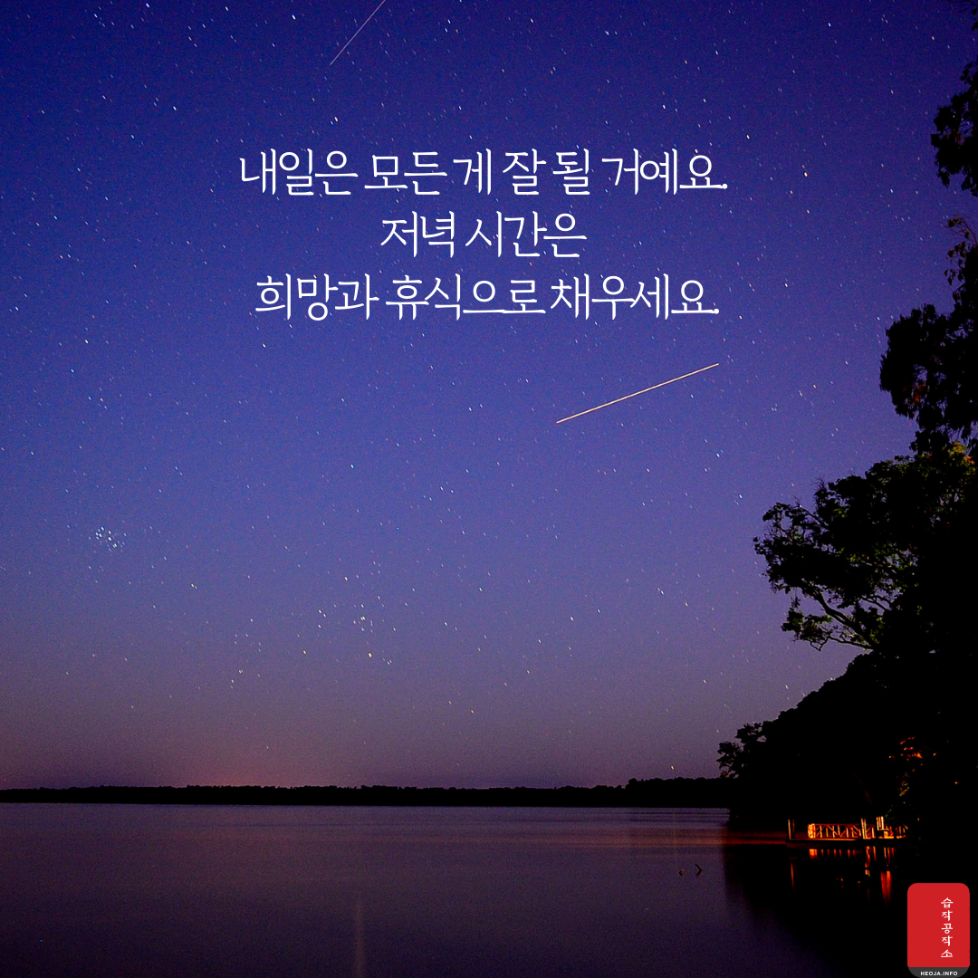 20. 하루의 끝에 스스로를 토닥이며, 내일의 기대감으로 가득 찬 저녁 시간 되세요.