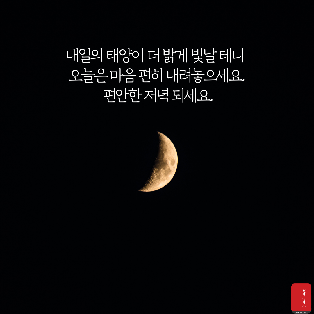 15. 내일의 태양이 더 밝게 빛날 테니 오늘은 마음 편히 내려놓으세요. 편안한 저녁 되세요.