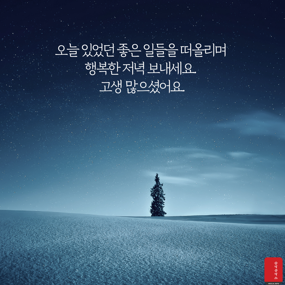 12. 하루를 마무리하며 스스로에게도 따뜻한 위로를 건네보세요. 좋은 저녁 되세요!