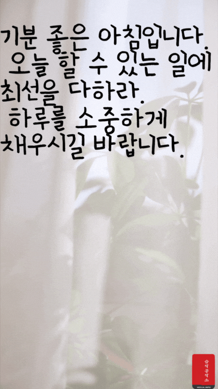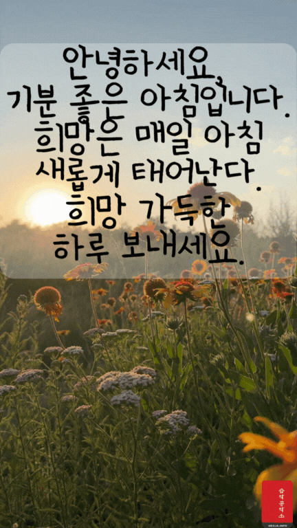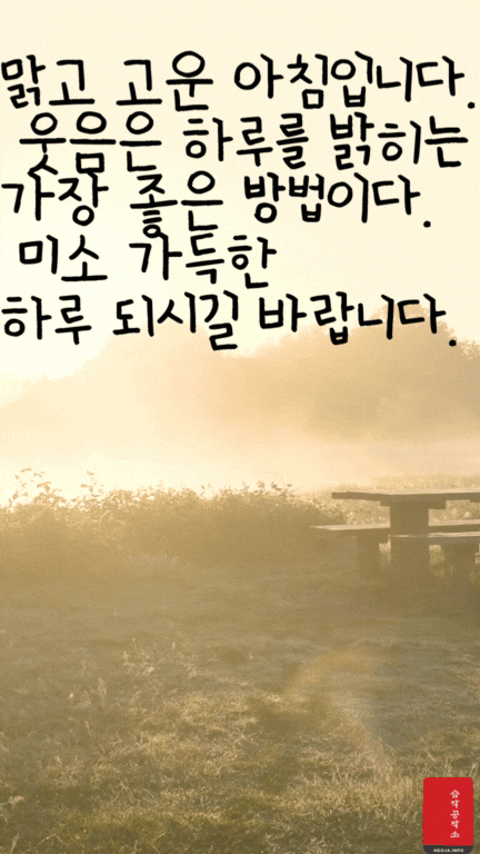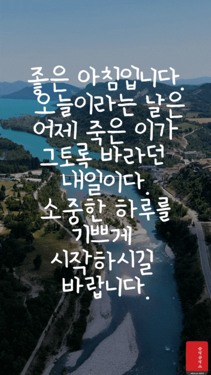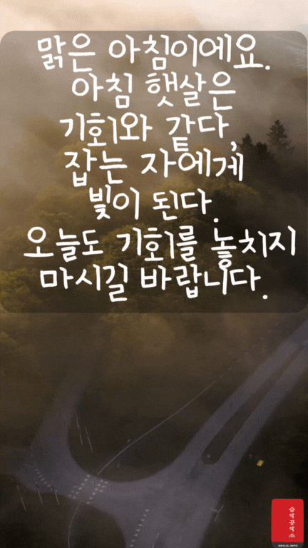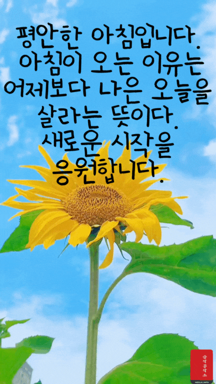 움직이는 오늘 아침 인사 이미지와 아침 인사로 좋은 글귀를 함께 만들었다. 확실히 그냥 오늘 아침 인사 이미지보다는 움직이는 아침 인사 GIF 이미지와 아침 인사로 좋은 글귀가 있으니 느낌이 더 좋은 거 같다.