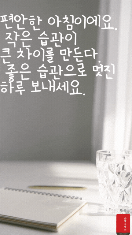 8. 편안한 아침이에요. 작은 습관이 큰 차이를 만든다. 좋은 습관으로 멋진 하루 보내세요.