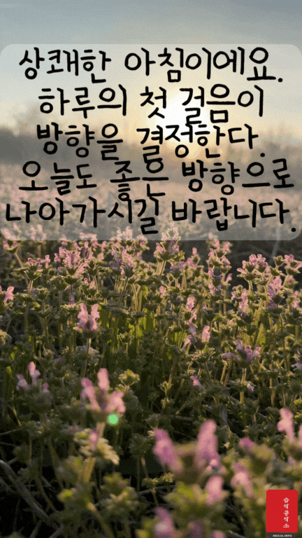 2. 상쾌한 아침이에요. 하루의 첫걸음이 방향을 결정한다. 오늘도 좋은 방향으로 나아가시길 바랍니다.