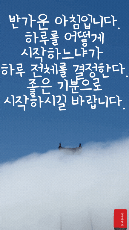 움직이는 오늘 아침 인사 이미지와 아침 인사로 좋은 글귀를 함께 만들었다. 확실히 그냥 오늘 아침 인사 이미지보다는 움직이는 아침 인사 GIF 이미지와 아침 인사로 좋은 글귀가 있으니 느낌이 더 좋은 거 같다.