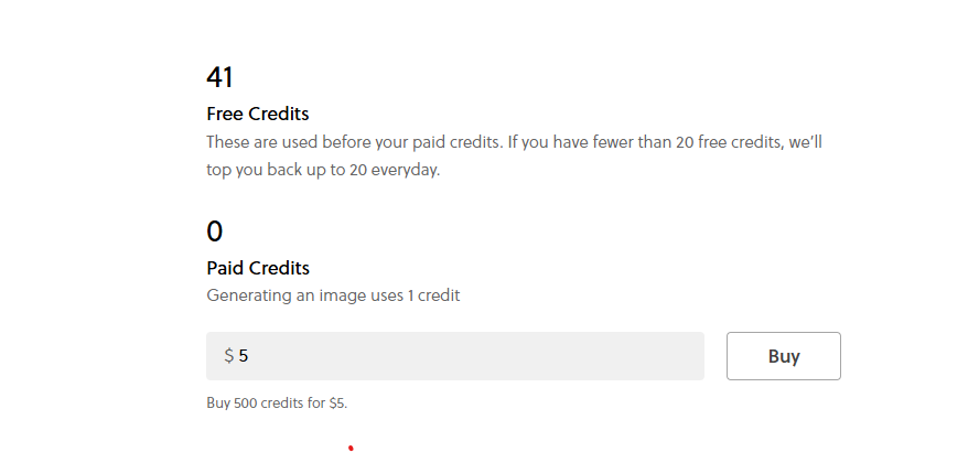 게다가 크레딧을 다 사용하면 매일 20개씩 채워준단다...즉 하루에 20장씩 공짜로 무료 ai 이미지 생성이 가능하다. (사실 다 안 써봐소 모르겠음..)