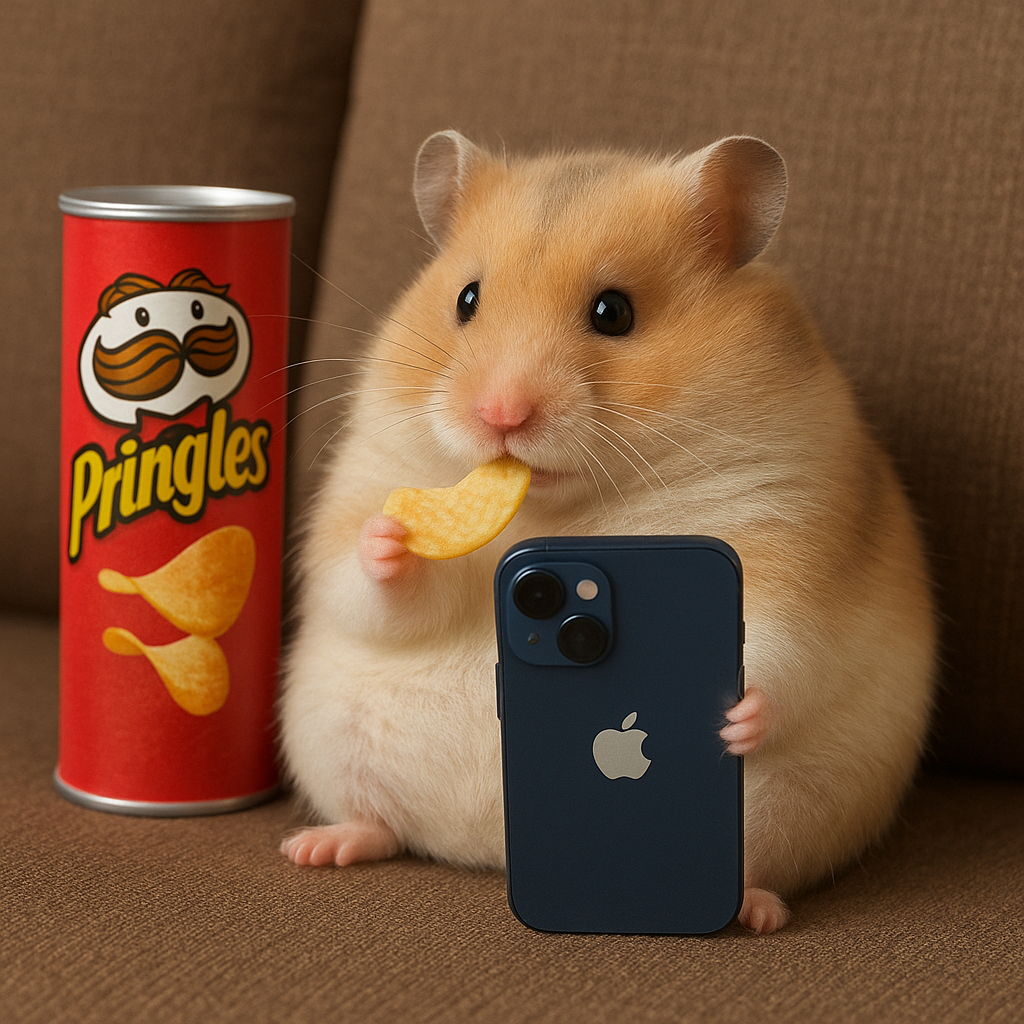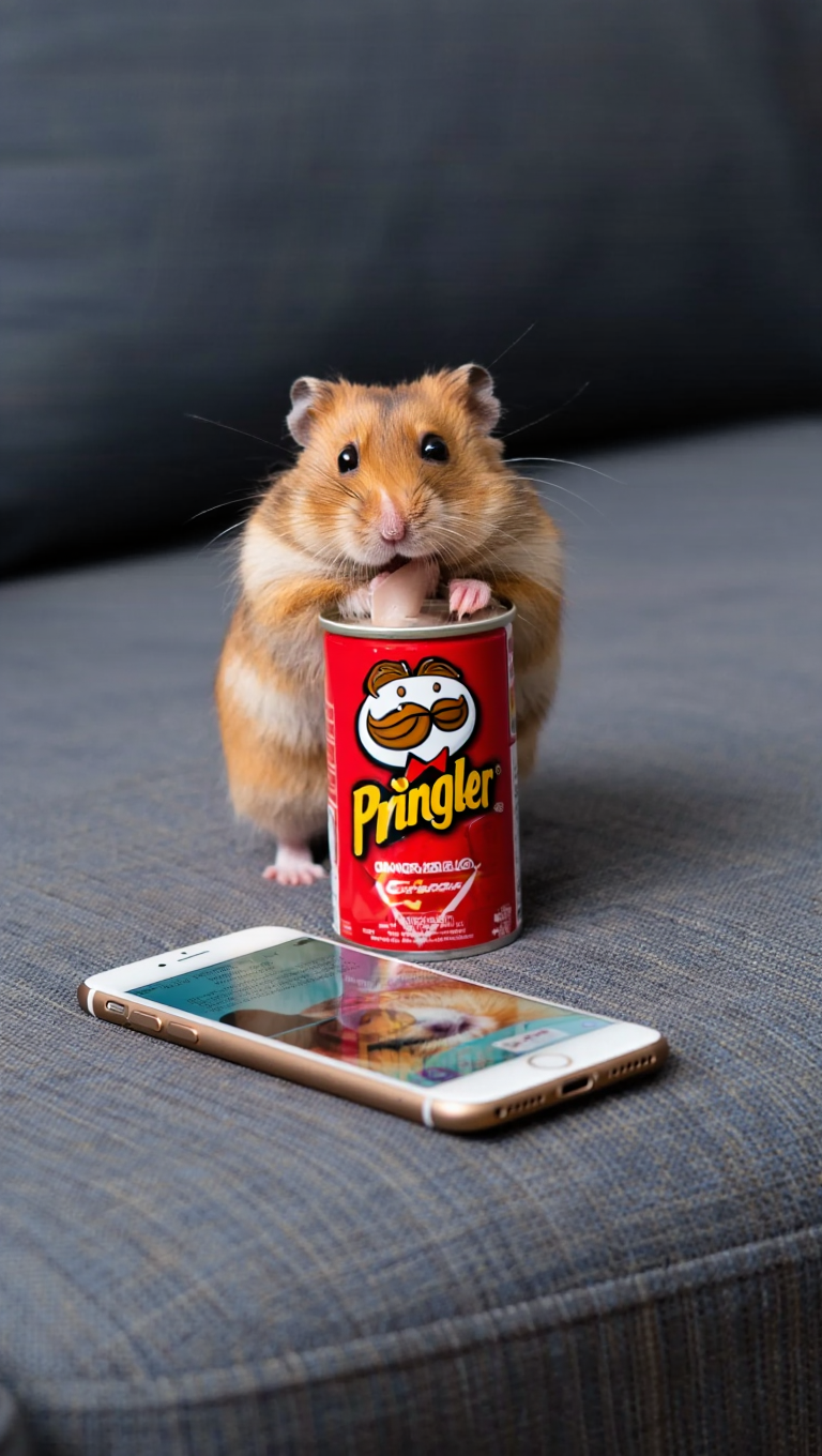 이렇게 gpt로 햄스터가 프링글스 과자를 먹으면서 아이폰을 보는 장면이라고 하면 간단하게 생성 완료. 무료 gpt에서도 이미지 생성이 가능하니...좋은 시대다... 이야기한대로 gpt가 프링글스, 아이폰과 같은 실물 이미지를 정확하게 반영한다.