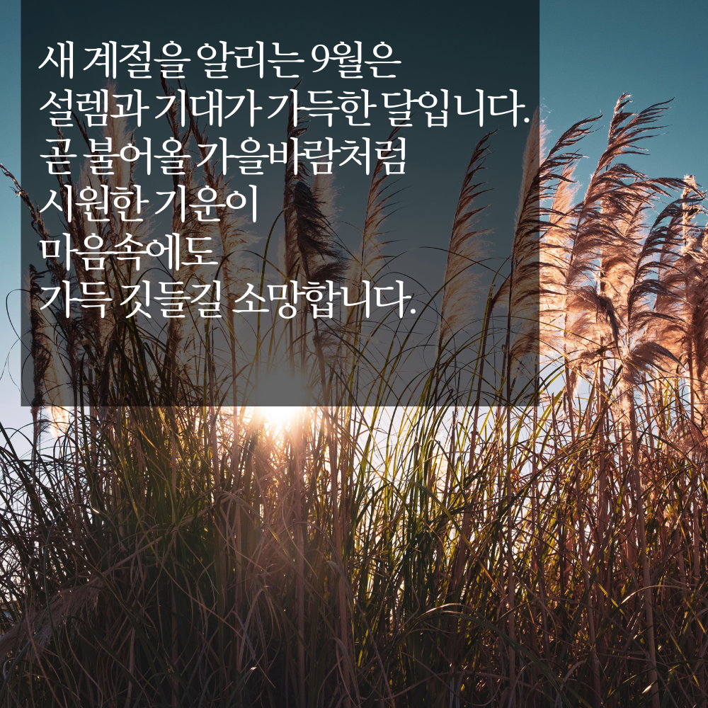 6. 새 계절을 알리는 9월은 설렘과 기대가 가득한 달입니다. 곧 불어올 가을바람처럼 시원한 기운이 마음속에도 가득 깃들길 소망합니다.