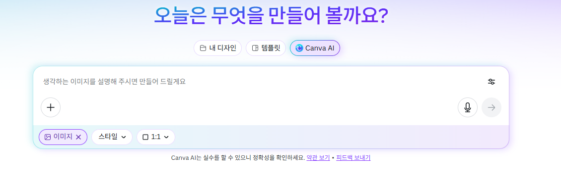 디테일과 성능, 기능면에서는 떨어질 수 있지만 가격 생각해 본다면 시도할만한 사이트. 캔바 ai 이미지 생성법은 그냥 홈 화면에서 ai 이미지 만들기 선택 후 프롬프트 입력하면 끝.