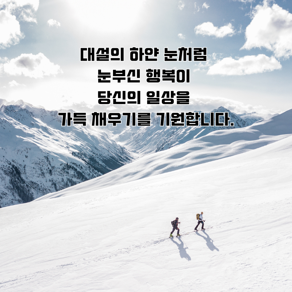 1. 대설을 맞아 하늘에서 내리는 하얀 눈처럼 설레는 기쁨이 가득하시길 바랍니다. 따뜻한 연말 보내세요.