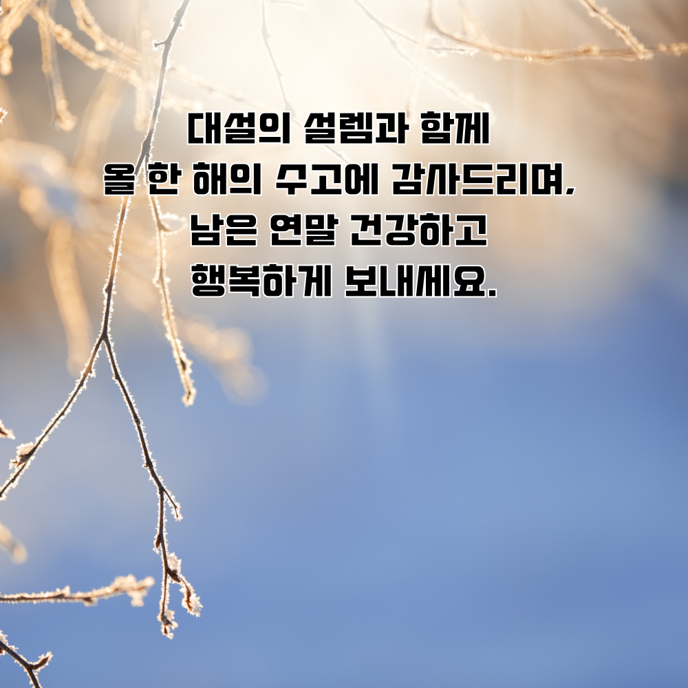 3. 대설의 하얀 눈처럼 눈부신 행복이 당신의 일상을 가득 채우기를 기원합니다.