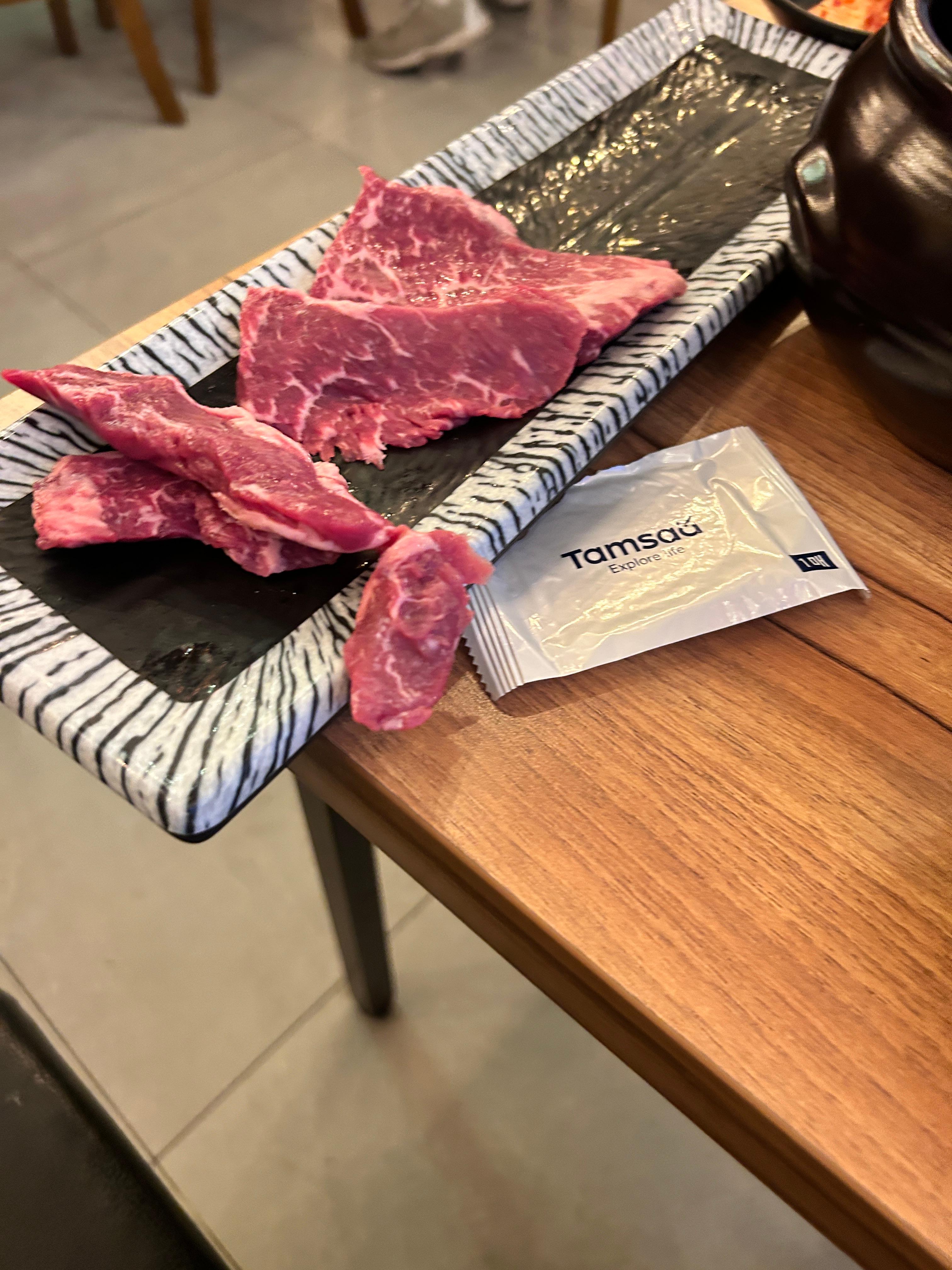 마포 육곳간 등신 사진. 상당히 두툼해서 스테이크 느낌인데 의외로 질기지 않다. 물론 한우처럼 엄청 고소하거나 기름진 느낌이 들지는 않는데 담백한 스테이크 먹는 느낌임. 괜찮음.
