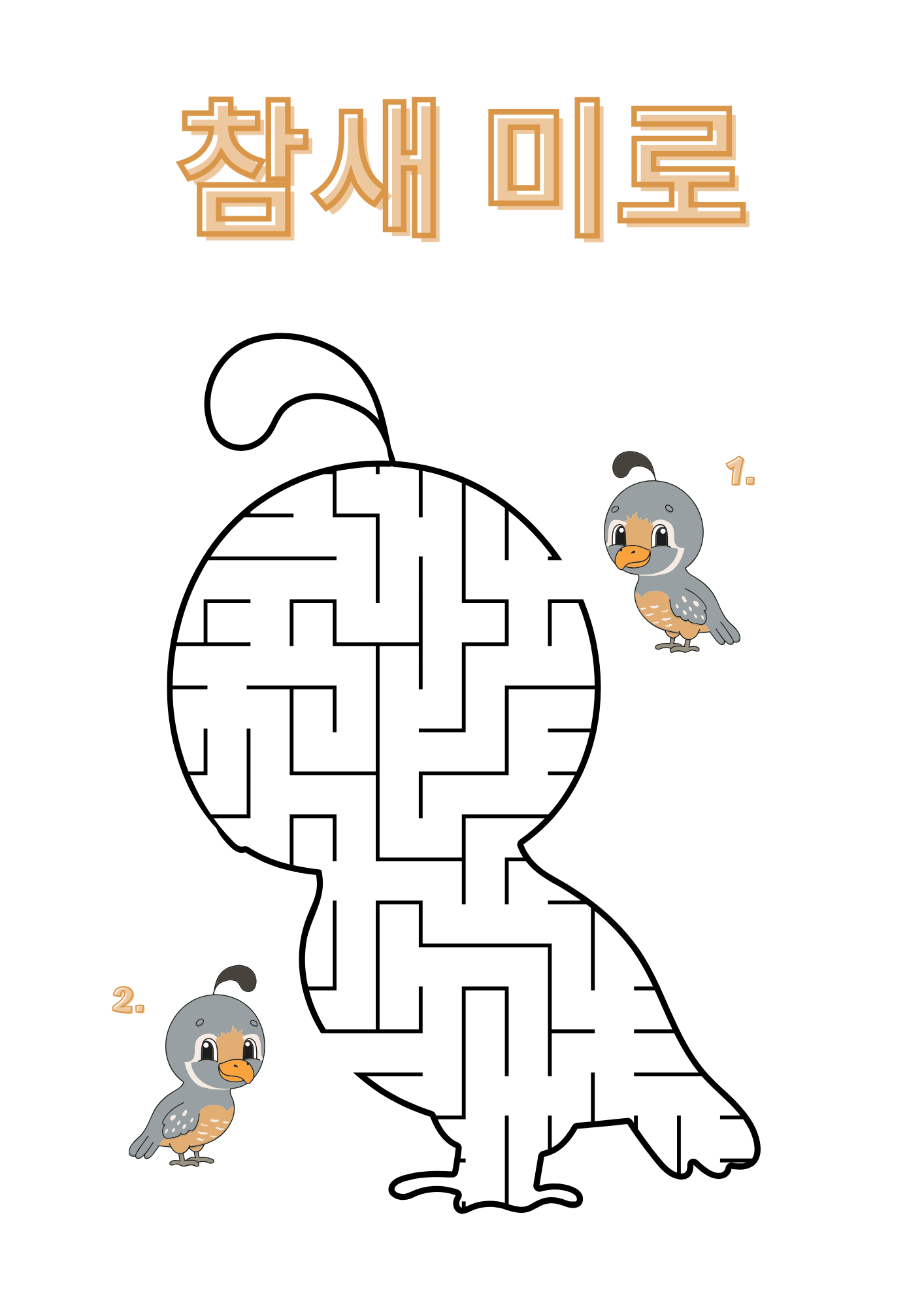 간단한 참새 미로. 나이 많은 분들이 치매 예방이나 인지력 유지를 위해 하는 것도 좋을 듯...요새는 사람들이 머리를 안 쓰니까...맨날 쇼츠나 멍하니 보고..